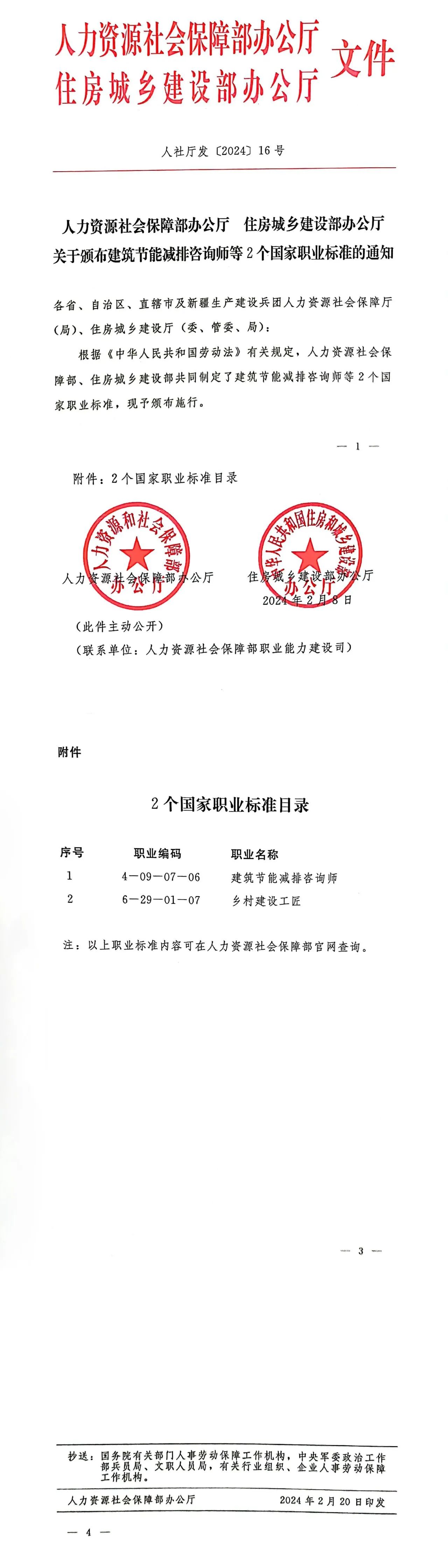 中国建筑节能协会牵头主编的《建筑节能减排咨询师国家职业标准》由人社部、住建部联合发布